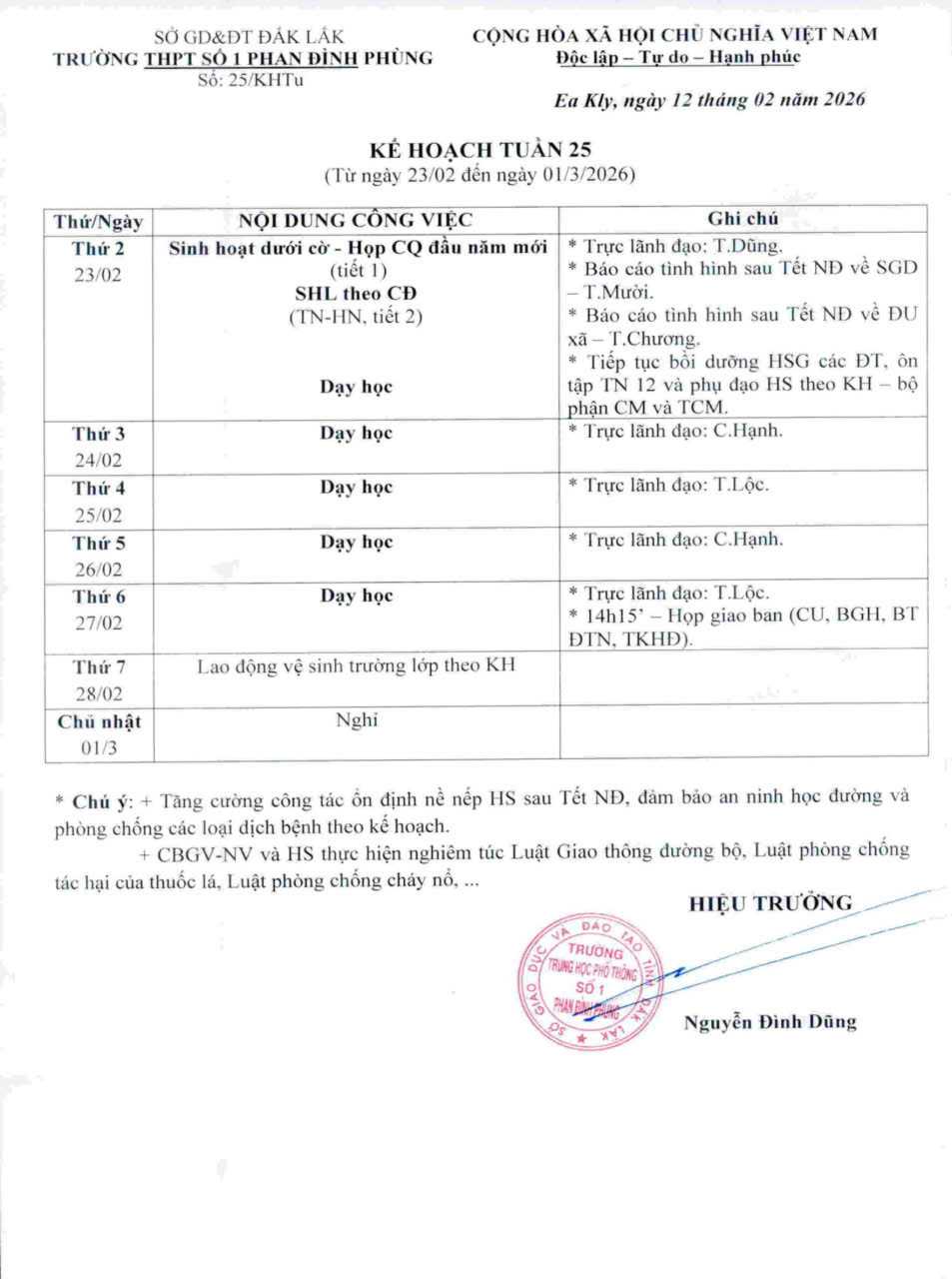 Kế hoạch tuần 42