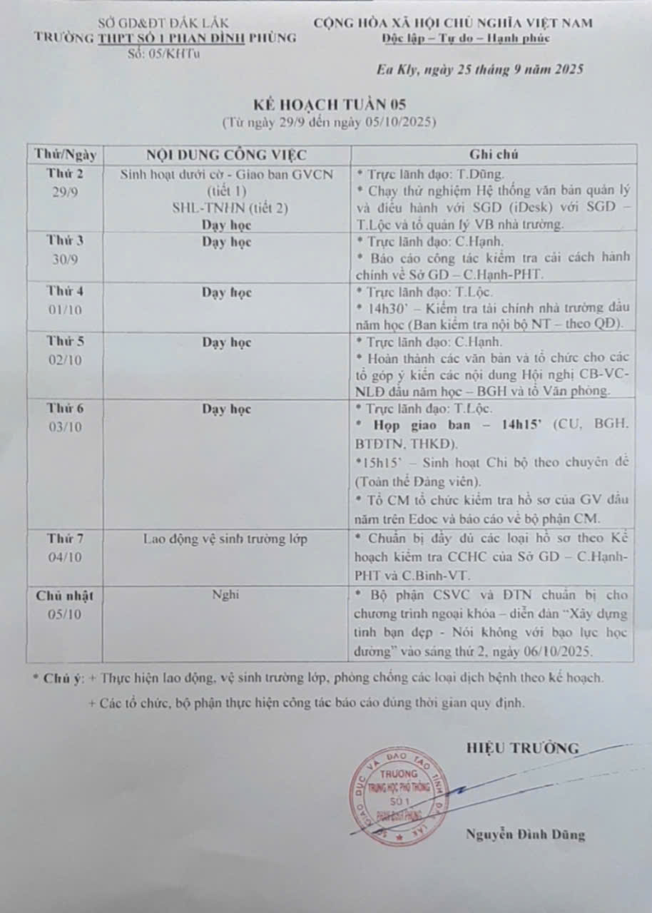 Kế hoạch Tuần 01 – Năm học 2025-2026