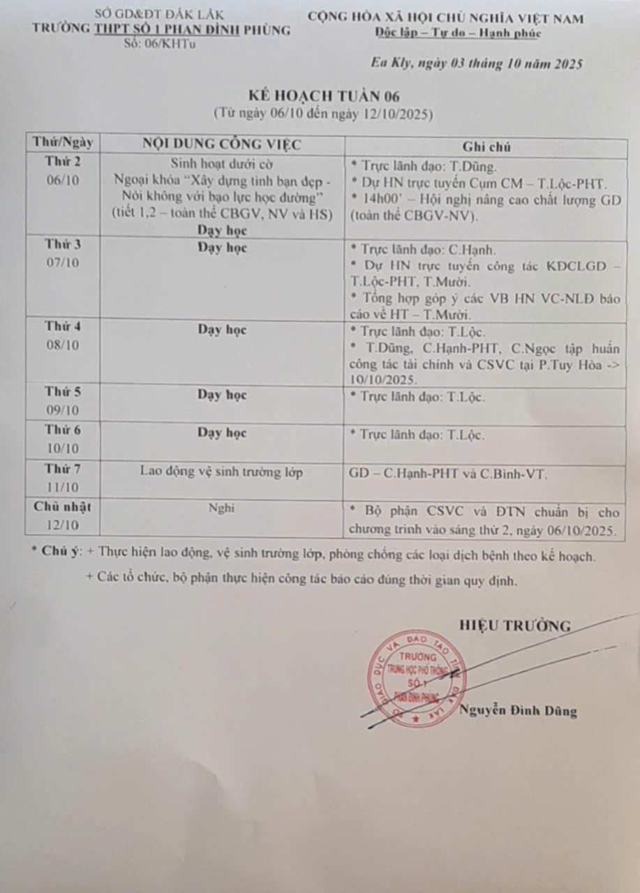 Kế hoạch Tuần 01 – Năm học 2025-2026